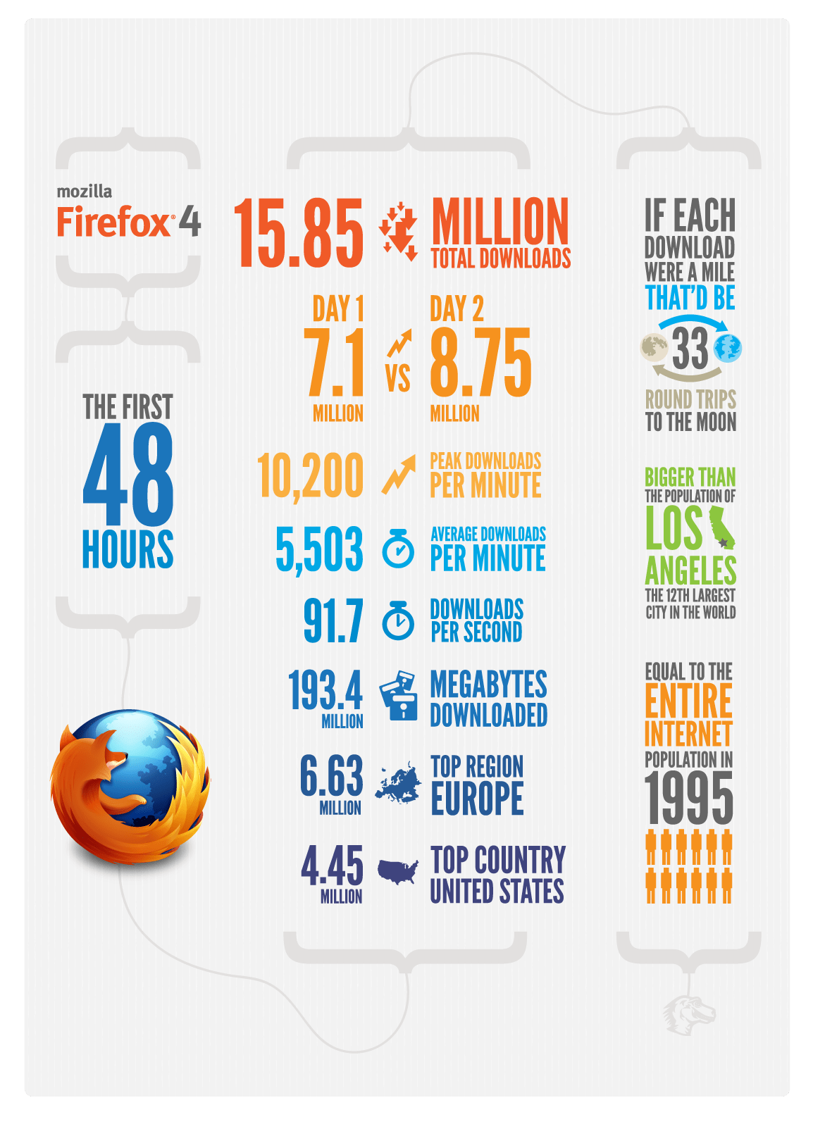 Una infografía sobre sas 48 primeras horas de Firefox 4.