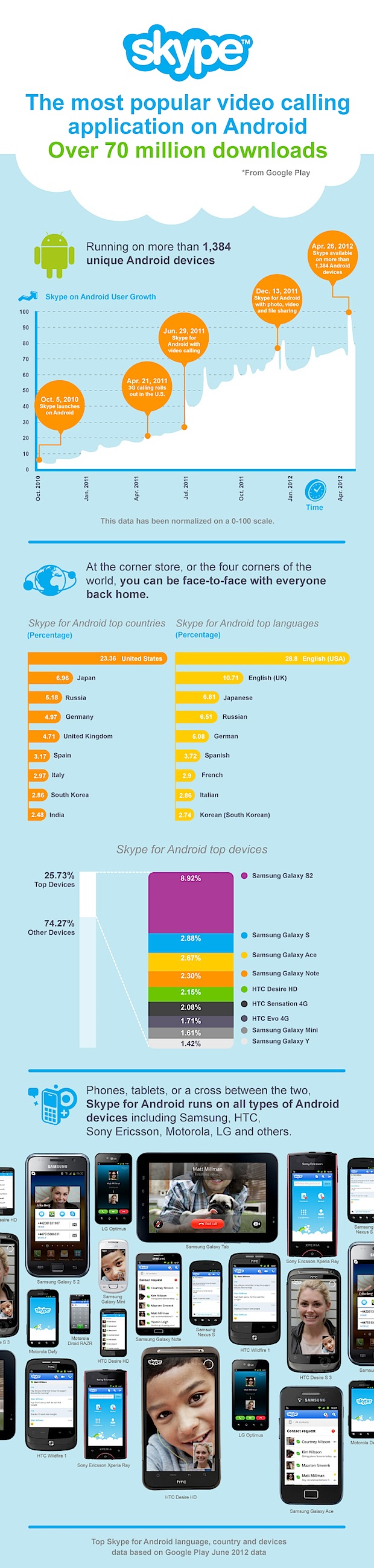 na infografía sobre Skype para Android: 70 millones de descargas.