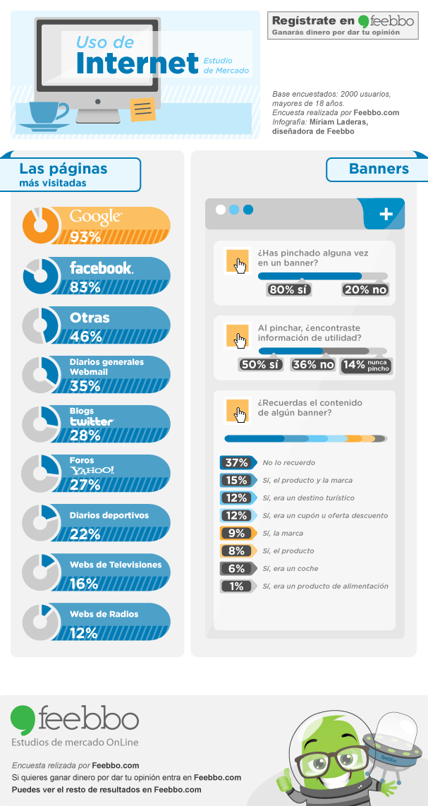 Cómo usamos Internet (páginas más vistas y banner) #infografia #infographic #internet #marketing