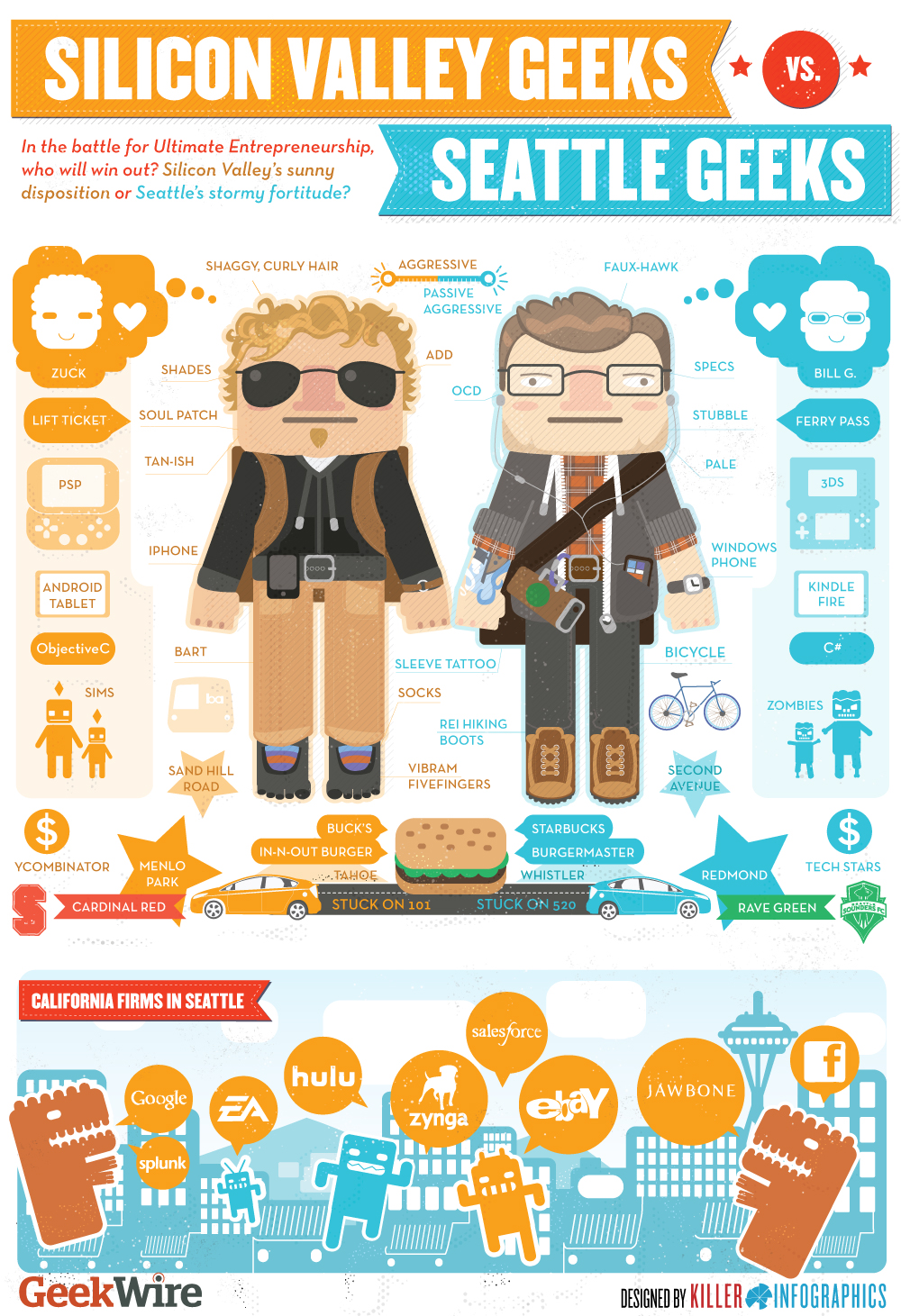 Una infografía sobre Silicon Valley Geeks vs. Seatle Geeks.