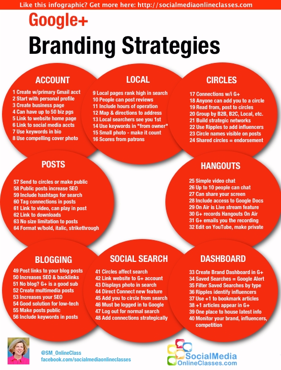 Una infografía con 64 estrategias de marketing para Google +.