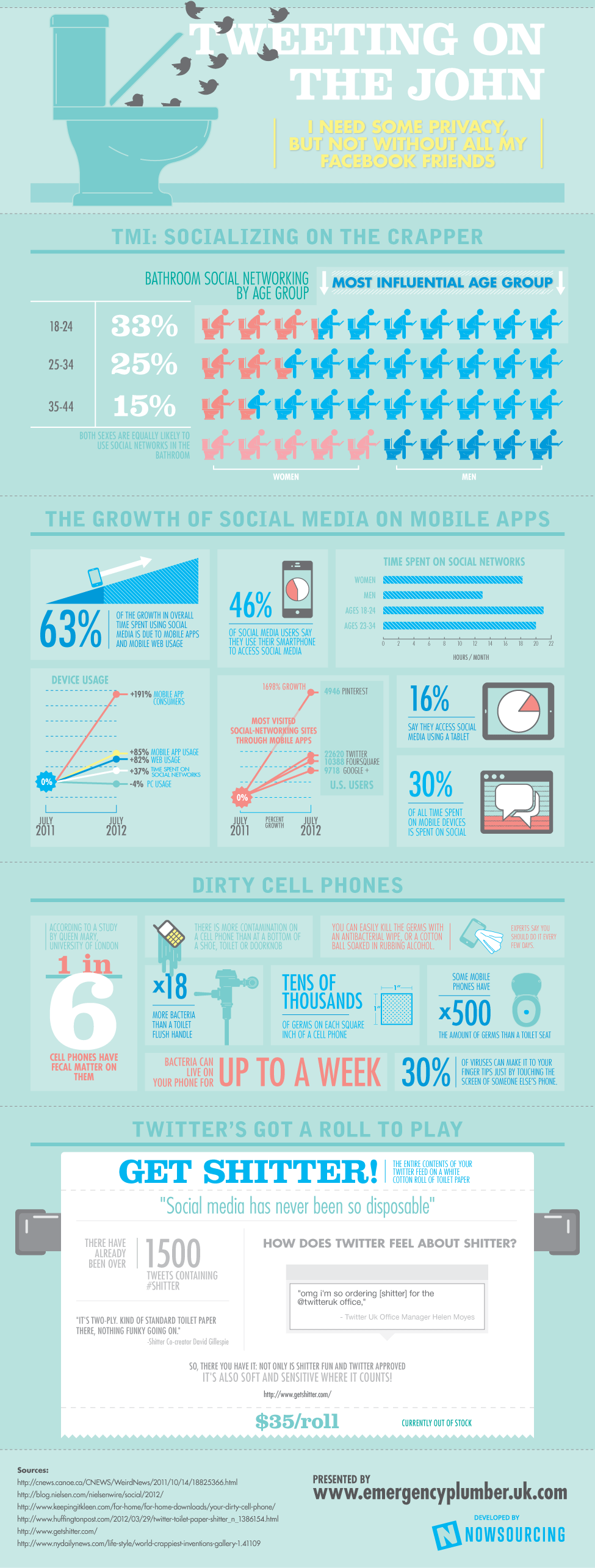 Una infografía que dice que Algunos usan Twitter hasta en el baño.
