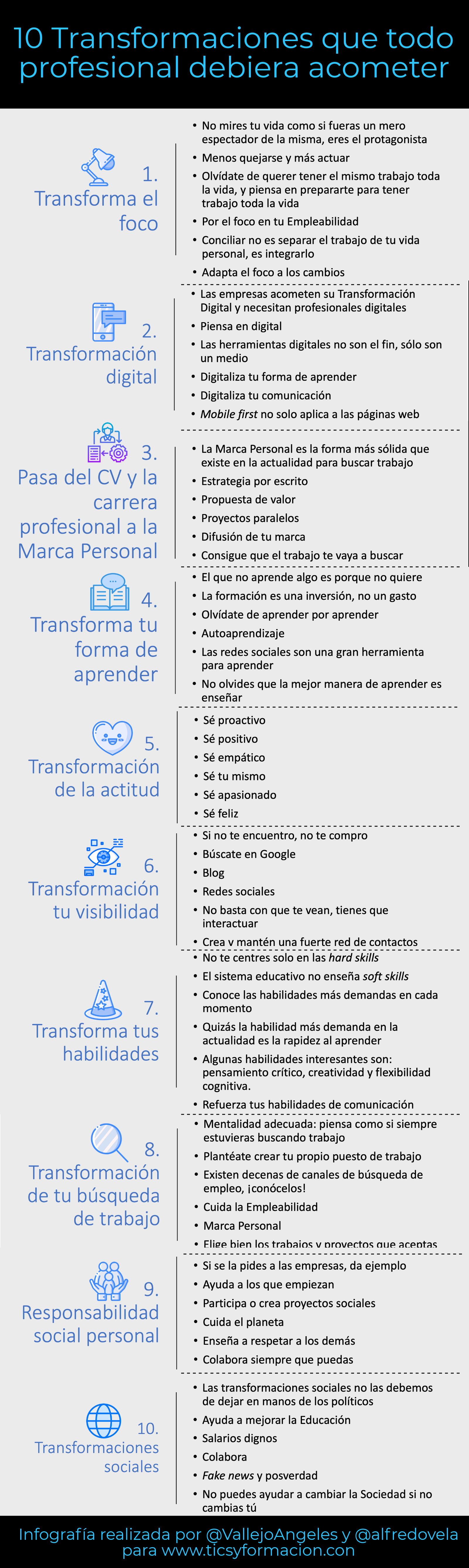 Una infografía con 10 Transformaciones que todo profesional debiera acometer.