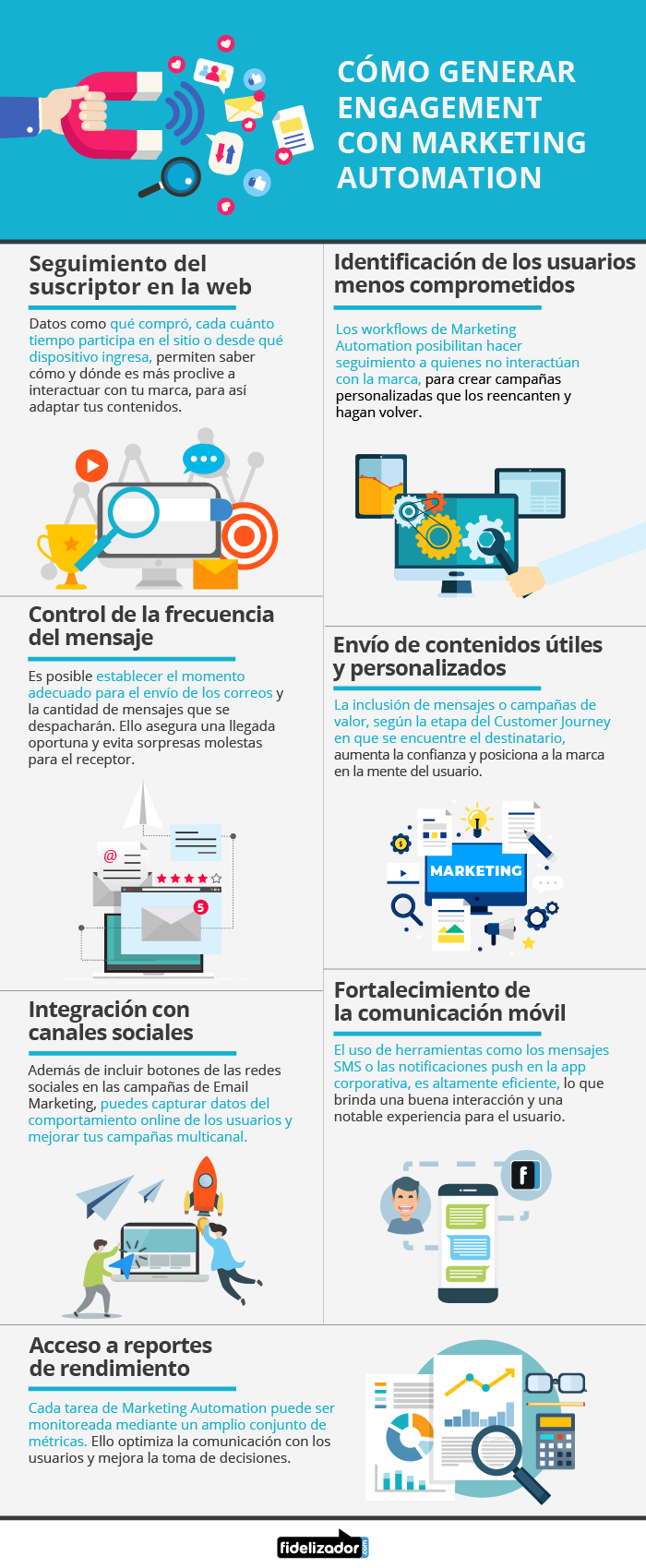 Una infografía sobre Cómo generar engagement con Marketing Automation. Vía Fidelizador