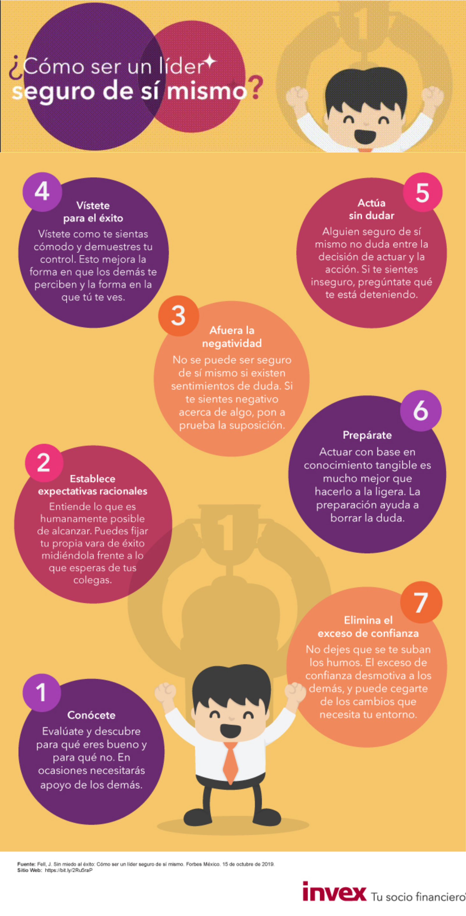 Una infografía sobre cómo ser un líder seguro de sí mismo. Vía Invex