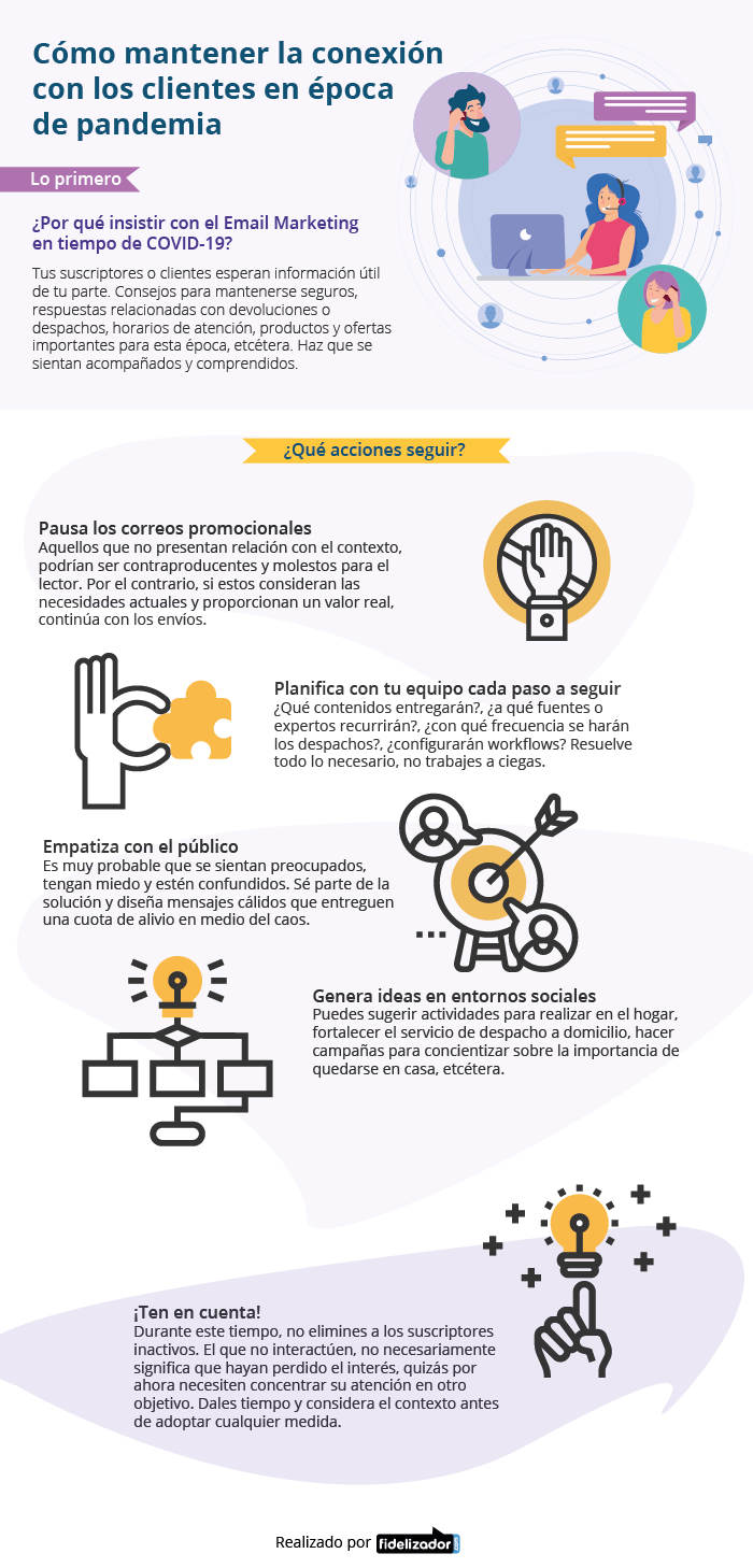 Una infografía sobre cómo mantener el contacto con los clientes en época de confinamiento. Vía Fidelizador