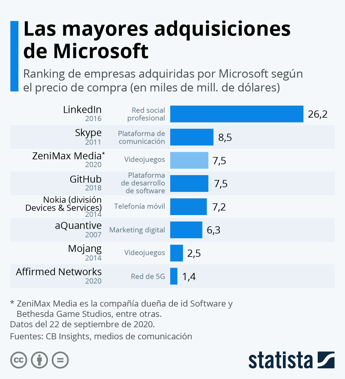 Las mayores adquisiciones de Microsoft #infografia #infographic Publicado el 15/09/2020 por alfredovela Un comentario Hola: Una infografía sobre las mayores adquisiciones de Microsoft. Vía Statista Un saludo Las mayores adquisiciones de Microsoft Comparte: Compartir en X (Se abre en una ventana nueva) X Comparte en Facebook (Se abre en una ventana nueva) Facebook Haz clic en Pinterest (Se abre en una ventana nueva) Pinterest Compartir en LinkedIn (Se abre en una ventana nueva) LinkedIn Compartir en Tumblr (Se abre en una ventana nueva) Tumblr Compartir en WhatsApp (Se abre en una ventana nueva) WhatsApp Compartir en Telegram (Se abre en una ventana nueva) Telegram Compartir en Mastodon (Se abre en una ventana nueva) Mastodon Compartir en Reddit (Se abre en una ventana nueva) Reddit Compartir en Menéame (Se abre en una ventana nueva) Menéame Imprimir (Se abre en una ventana nueva) Imprimir Enviar un enlace a un amigo por correo electrónico (Se abre en una ventana nueva) Correo electrónico Me gusta esto:Me gusta Cargando... Economía Infografía