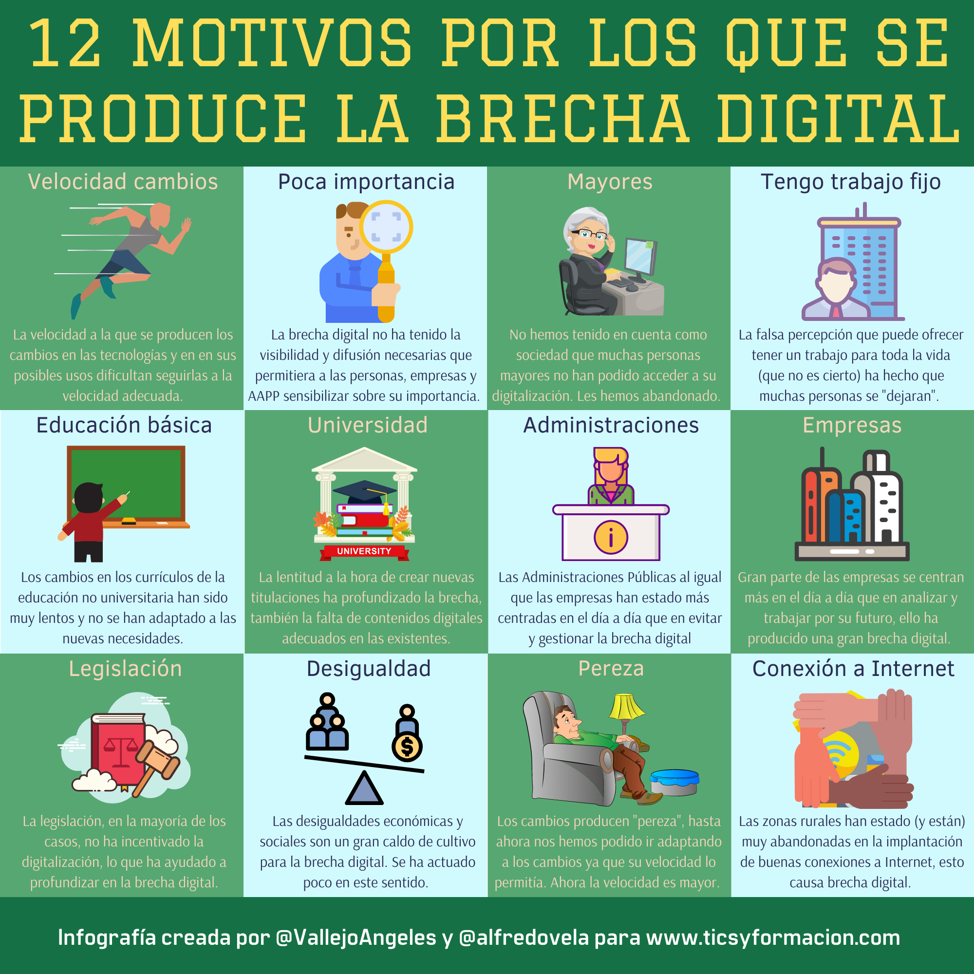 Una infografía con 12 motivos por los que se produce la Brecha Digital.